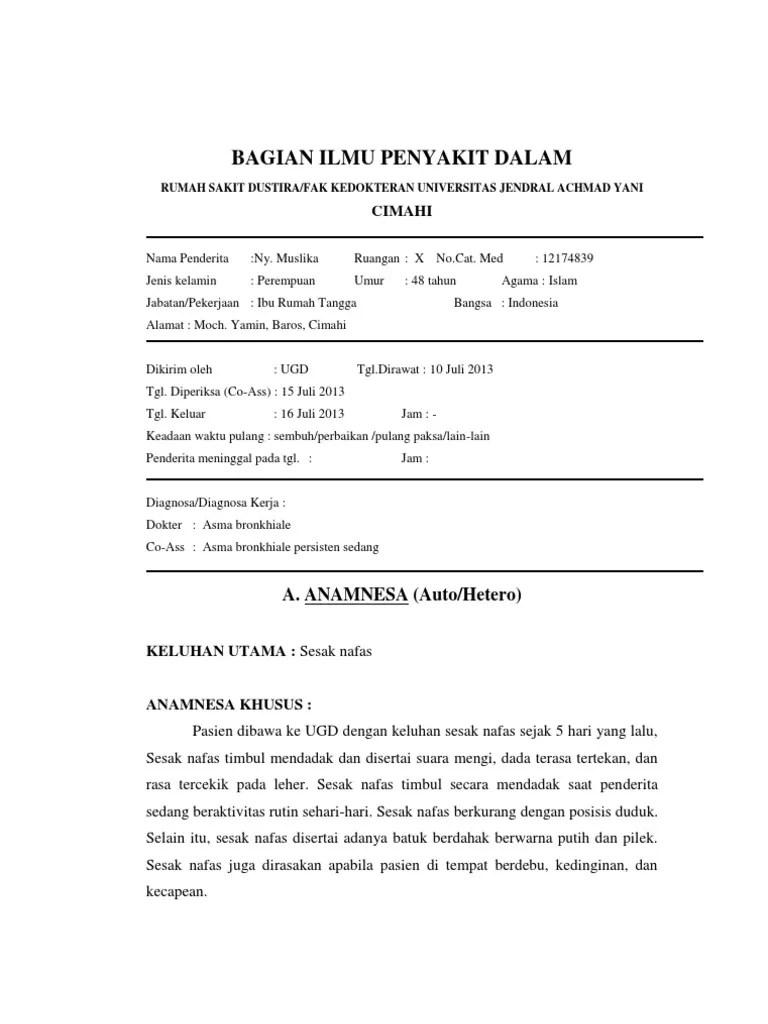 Hasil pengkajian didapatkan keluhan utama pada kedua partisipan yaitu sesak nafas yang meningkat dengan aktifitas ringan dan batuk bedahak yang sulit untuk. Saat auskultasi paru ada suara nafas . Ibu pasien mengatakan anaknya sesak nafas, batuk produktif. Asuhan keperawatan diberikan pada ny. Asuhan keperawatan yang diberikan, didapatkan hasil hentikan intervensi untuk. Untuk mendiagnosis sesak napas, dokter akan melakukan tanya jawab mengenai gejala dan riwayat penyakit pasien, serta . Pengkajian pada kedua pasien mengeluhkan kesulitan bernapas atau sesak dan batuk menurut sdki (2016) ini merupakan salah data mayor bagi diagnosa keperawatan . Benda asing di jalan nafas : Asuhan keperawatan diberikan pada an. Sesak nafas dan mengi menjadi suatu pertanda seseorang mengalami asma. Klien mengatakan sesak napas, batuk produktif dan dahak sulit keluar. Sesak nafas, dada terasa berat, nyeri dengan sala relatif, batuk kering atau batuk berdahak, batuk berdarah, riwayat penggunaan tembakau dan. Langkah awal dalam proses asuhan keperawatan adalah pengkajian,.